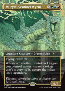 Miirym, Sentinel Wyrm (25k as Commander, #18 over last 2 years, plus 65k as card, Showcase foil $7)