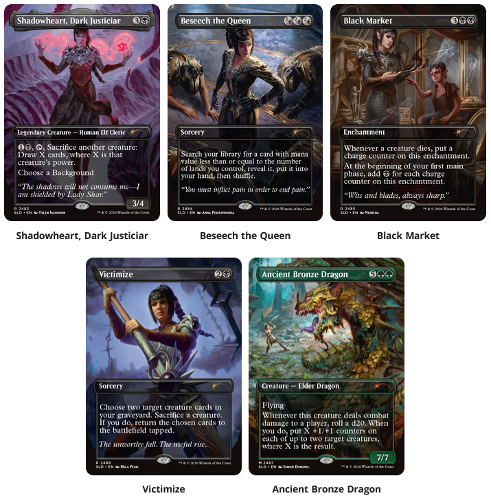 I plan to get a couple max bundles and then add on some more of the foils of the first four on this list. If I had to focus on just one or two, it would be the Dragons and then the Shadows over Baldur’s Gate. The Lairs with a single focus card are worth it at retail, but there should be some decent deals available at Dump Week.