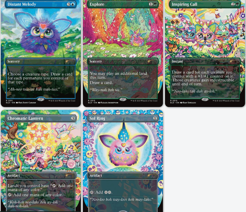 For these three lairs, we’re looking at $30/$40 like usual but there’s also some $60 confetti foils, which are probably the same treatment that the Enchanted Tales subset had back in Wilds of Eldraine. It’s a fun treatment, especially on cards like these, but there are still lots of confetti foils that are inexpensive. That subset also had anime art, which Magic players tend to love. I’m not sold on confetti alone being a reason to buy in.