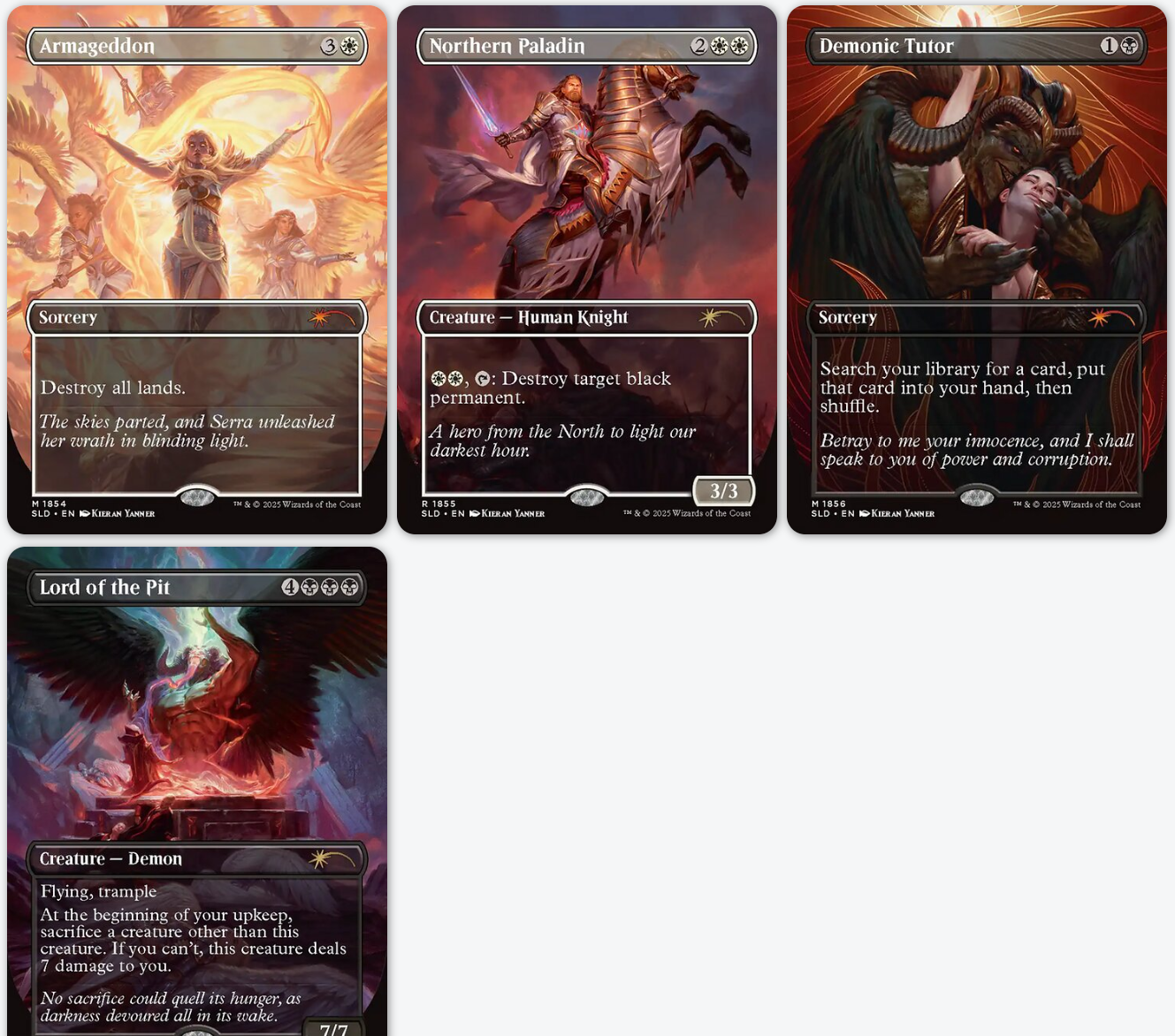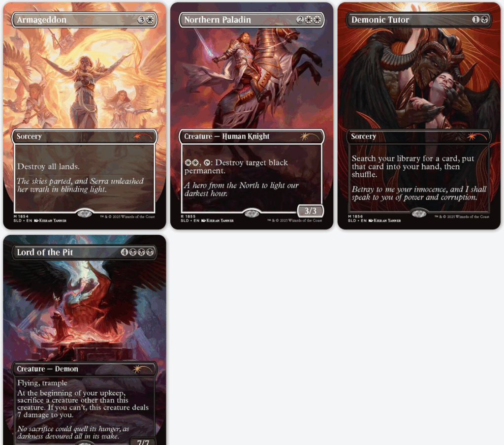 Frankly, this is one of the best values I’ve ever seen in a Secret Lair. The cheapest nonfoils are $45+, and you can get one here for $30. The art is stunning, worthy of being hung on the wall, and let me send a big thank you to everyone at WotC who decided to give artists a borderless frame and more to work with in the Artist Series lairs. The other three cards are gorgeous, but clearly the focus here is the Tutor. Buying this is a given and should be plenty profitable. I am also quite likely to get in on a few extra copies in Dump Week.